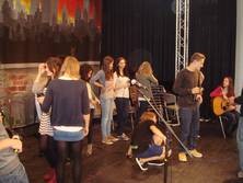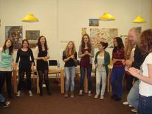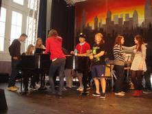 Mit den Erkenntnissen schrieben die SchülerInnen unter Anleitung von Frank Bode gemeinsam einen Song (pdf), studierten die singenden Passagen ein, übten die Instrumentenbegleitung und stellten den Rap bei der Abschlusspräsentation in der Aula vor. Je nach Fähigkeit brachten die Schülerinnen im gesamten Projekt ihre unterschiedlichen Kompetenzen ein. (M. Kleineberg)