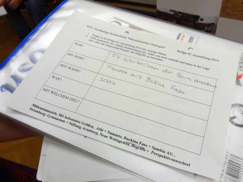 Am Abend vorher hatte eine "Expertenrunde" mit ehemaligen Welt:Klasse SchülerInnen, Gründungsmitgliedern der Schülerfirma "Macadamiafans Göttingen" und den "Macadamiafans Gröbenzell" stattgefunden. Anwesend waren auch Dr. Sascha Müller von Bridge It und Anja Belz vom EPIZ.