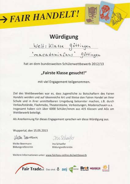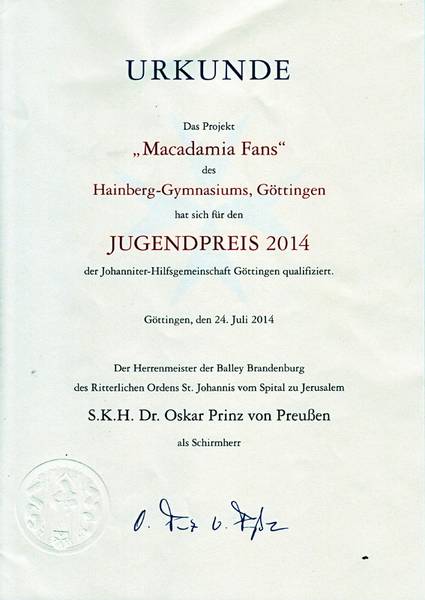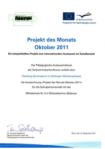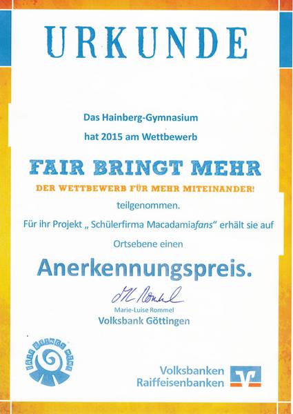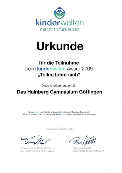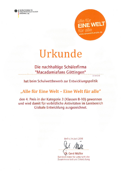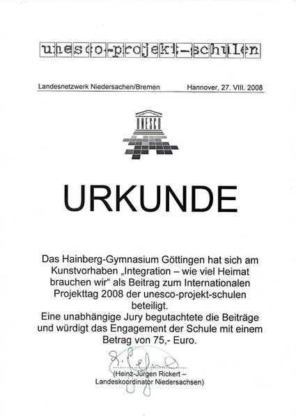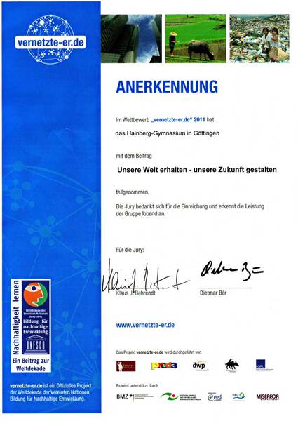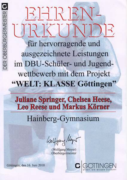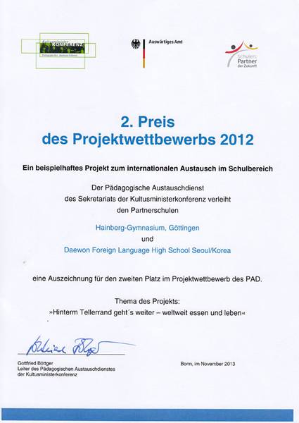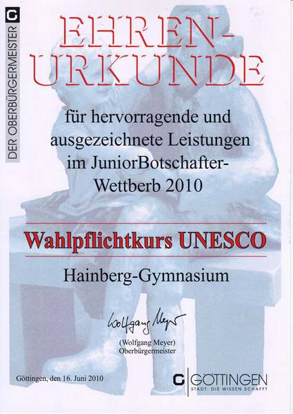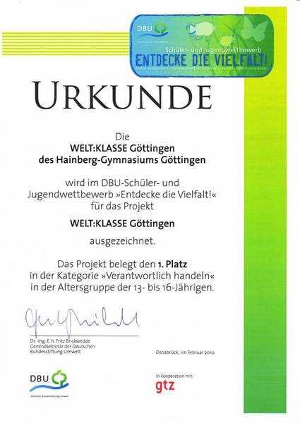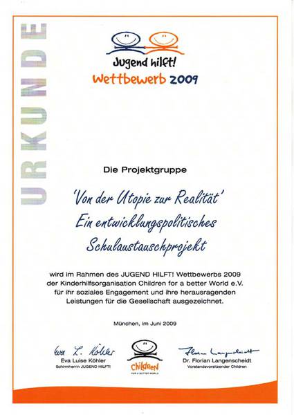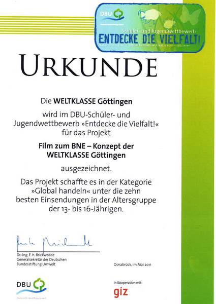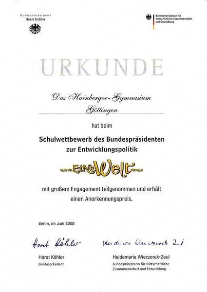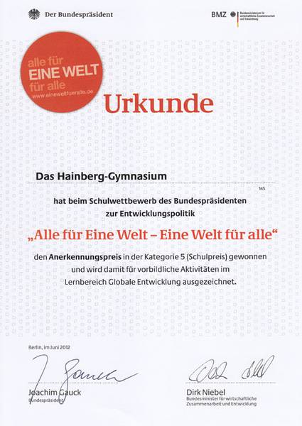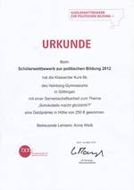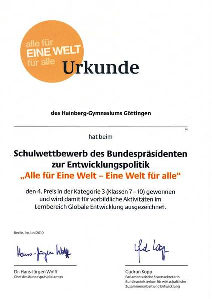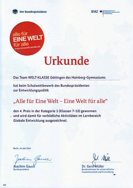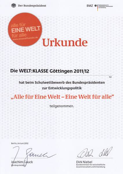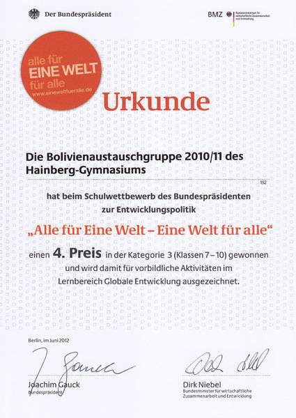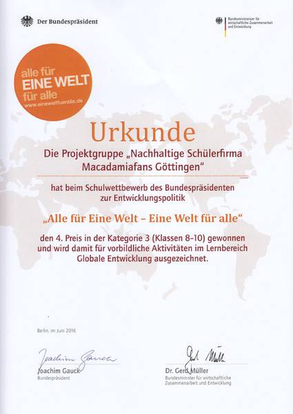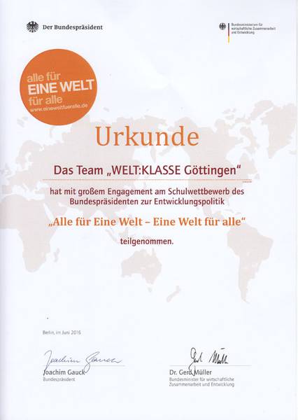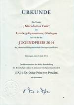 Schulpreis zum Wettbewerb des Bundespräsidenten 2016