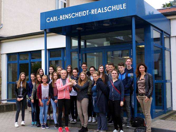 Das Schild mit den verschiedenen Schulformen an der Wand unserer Pausenhalle steht symbolisch dafür, dass man sich einmischen sollte. Es gibt viel zu viele Vorurteile zwischen Schülerinnen und Schülern eines Gymnasiums, einer Realschule oder einer Hauptschule. Man wird nach der Schulform abgestempelt und auch so behandelt. Wir finden, dass dies nicht der Fall sein sollte, da jeder Mensch gleich und auf seine Weise gut ist. Wir konnten schon Verbesserungen feststellen, wie zum Beispiel Sportkurse die schulübergreifend zwischen Realschule und Hauptschule stattfinden. Trotzdem finden wir, dass ALLE Schulen mehr miteinander arbeiten sollten, damit Vorurteile gar nicht erst entstehen können. Einer Umfrage unserer 10. Klasse zufolge, würden sich alle über gemeinsame Projekte, Sporttage oder Feste mit Schülerinnen und Schülern anderer Schulen freuen.