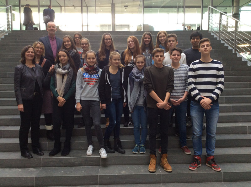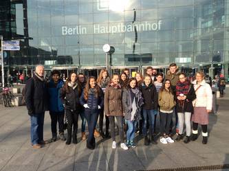 Wir machten uns am 10. November 2016 auf den Weg nach Berlin. Dabei waren Till, Aaron, Julius, Felix und Isabel (aus der 10k2), Johanna, Nora, Antonia, Mia und Loredana (aus der 10k3), Pauline, Malin und Lisa aus dem WPU 9 und Michelle, Camilla und Rodrigo unsere Praktikanten aus Bolivien.