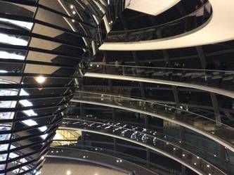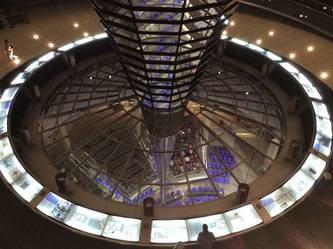 Obwohl der Zug 35 Minuten Verspätung hatte, kamen wir gut gelaunt in Berlin an, das war aber auch nötig, schließlich hatten wir einen vollen Terminplan: Zuerst Mittagessen im Verwaltungsgebäude des Bundestags, dann ein Gespräch mit einem Angestellten des SPD- Vorsitzenden Thomas Oppermann und danach hatten wir das große Glück, einer sehr spannenden Debatte der Bundestagsabgeordneten beizuwohnen. Später besichtigten wir noch die Kuppel des Reichstagsgebäudes und hatten einen wundervollen Ausblick über Berlin im Dunkeln. Nach dem Abendessen im Hotel gab es dann noch einen Überraschungsbesuch im ‚Matrix Club’, bekannt durch die Serie ‚Berlin Tag und Nacht’, der regelmäßig seine Türen für Schulklassen öffnet- ohne Alkohol und nur bis zwölf Uhr natürlich.
