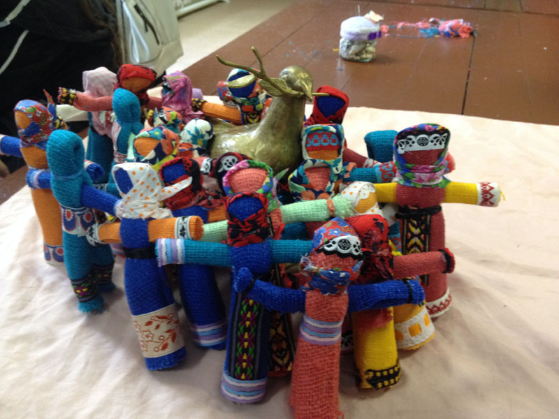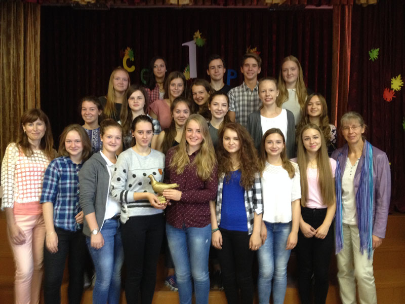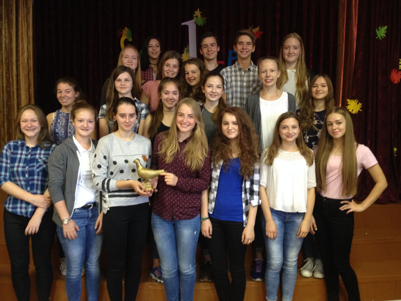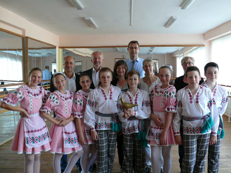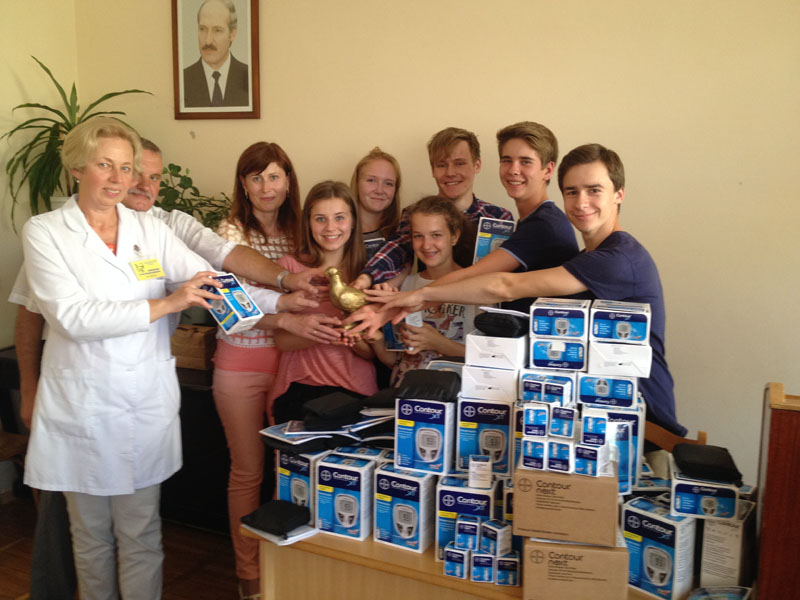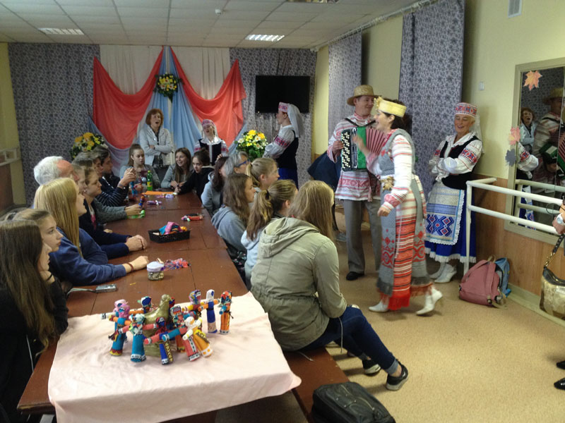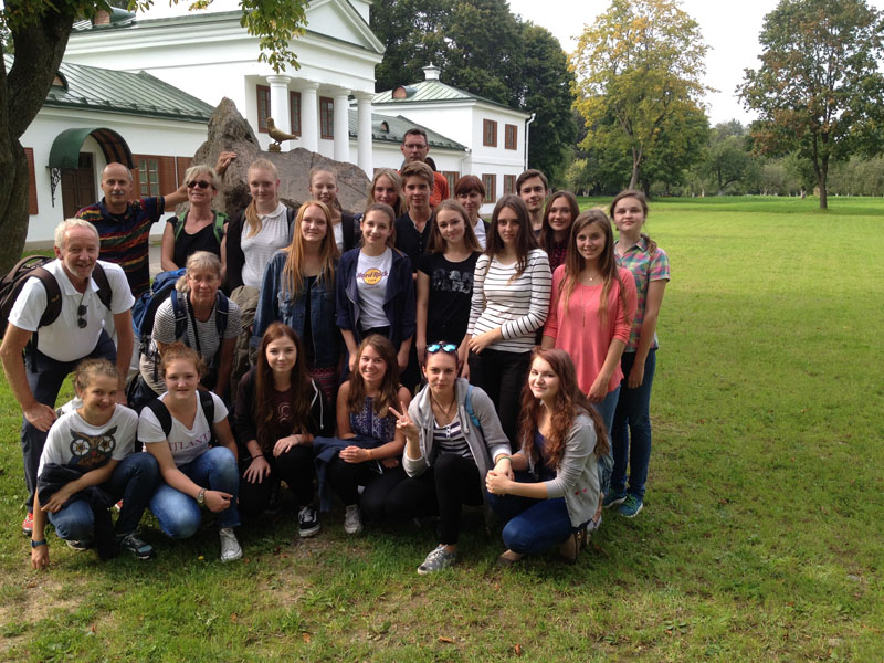 Der Themenschwerpunkt "20 Jahre Weißrusslandaustausch - Miteinander, voneinander lernen und Feste feiern" wurde intensiv durch das vielseitige Programm umgesetzt. Am Samstag (10.09.2016) wurde ein gemeinsamer Ausflug zum Gutshaus Salesje des Komponisten Oginski unternommen. Hier lernte sich die Gruppe durch unterschiedliche Bewegungsspiele u.a. mit einem Schwungtuch kennen. Das Gutshaus war inzwischen so weit restauriert, dass die verschiedenen Lebensräume des Komponisten als Museum zu besichtigen waren. Das Treffen mit den an Diabetes erkrankten Kindern, deren Eltern und der Ärztin Frau Saprudskaja in der Kinderklinik war sehr beeindruckend. Dieses Mal konnten wir neben den Blutzuckerteststreifen durch eine großzügige Spende 72 Blutzuckermessgeräte übergeben, die einen kostengünstigeren Teststreifen benötigen. Miteinander und voneinander lernen fand ebenso in einem Workshop zum Thema belarussische Volkstänze statt. Hier erhielten die Jugendlichen nach einer eindrucksvollen Volkstanzpräsentation die Gelegenheit, die Schrittfolgen selbst auszuprobieren. In Minsk konnten die SchülerInnen Eindrücke einer Hauptstadt gewinnen und als Höhepunkt am Abend das Ballett Vytautas von Vyacheslav Kwznetson im Staatlichen Theater für Oper und Ballett besuchen. Beim Besuch des Jugendkulturzentrums "Rostok" wurden nicht nur Schwerpunkte der belarussischen Kultur wie Kunsthandwerk und Lieder kennengelernt, sondern gemeinsam in einem Workshop eine Puppe gebastelt, die einen Glücksbringer darstellt. Ein besonderes Ereignis während des Austausches war die Begegnung mit der Zeitzeugin Tamara Bychov. Sie hat das Todeslager Ozarichi in der Nähe von Minsk überlebt und war im Juni 2016 zu Gast im Hainberg-Gymnasium. Da sie in Molodetschno wohnt, bat sie uns, Kontakt aufzunehmen, wenn wir in Molodetschno sind. Erschütternd berichtete sie von ihren Erlebnissen.
