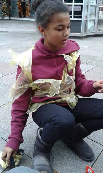 Mit unserer Aktion „Sichtwechsel – Straßenkind für einen Tag“, die jährlich von Terre des hommes initiiert wird, haben wir mit unserem WPU UNESCO des 8. Jahrgangs am 21. November 2016 auf Straßenkinder weltweit, aber besonders auf Straßenkinder in Mosambique (Afrika) aufmerksam gemacht. Es waren aufregende Stunden. Es gab Menschen, die schockiert und traurig waren, als wir erzählt haben, dass es weltweit rund 100 Millionen Straßenkinder gibt. Menschen, denen es sehr ans Herz gegangen ist, als wir von der Situation dieser Kinder erzählt haben. Oft gab es auch Menschen, die unsere Aktion „Sichtwechsel“ sehr gut fanden, und die gerne dazu bereit waren, Terre des hommes dabei zu unterstützen, das Meninos-de-Mocambique-Kinderzentrum bauen zu können. Leider haben wir auch gemerkt, dass viele Menschen noch nicht einmal dazu bereit waren, sich auch nur mit dem Thema auseinanderzusetzen oder uns zuzuhören. Es war sehr erschreckend für uns, dass es Menschen gab, die gesagt haben: „Was interessiert mich, wie es anderen Menschen geht? Wir haben genug Probleme hier.“ Aber unser Ziel war es ja, Straßenkindern so gut es geht zu helfen, indem wir informieren und Spenden sammeln. Also haben wir immer wieder neue Menschen in der Fußgängerzone angesprochen. Am Anfang war es zwar ein ziemlich seltsames Gefühl, mit einem gelben Müllsack bekleidet durch die Stadt zu laufen, um symbolisch auf die Situation von Straßenkindern, die sich oft auch aus dem Müll ernähren müssen. Aber das ging schnell vorbei, wenn man Geld gesammelt hatte. Und man wusste: Damit kann vielleicht einem Kind von der Straße geholfen werden und es bekommt die Chance auf einen Neustart. Durch die Vorbereitung auf die Aktion und die Dinge, die man über das Leben auf der Straße gelernt hat, wurde einem klar, wie gut man es eigentlich hat und dass es wichtig ist, anderen zu helfen. Ich fand es eine tolle, aufregende und wichtige Aktion und ich bin froh, dass es auch Menschen gibt, die bereit dazu sind, anderen Menschen zu helfen und die nicht nur an sich denken. Ich wünsche mir, dass kein Kind oder Mensch mehr auf der Straße leben muss. Denn egal aus welchem Land man kommt, welche Sprache man spricht oder welche Hautfarbe man hat, jeder Mensch hat ein Recht auf ein gewaltfreies, normales Leben. Mensch ist Mensch, ob Muslim, Christ oder etwas anderes. Wir alle sind Menschen. (Lisa Mareen)