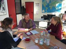 Laura N. und Emilia W. sowie Monika Kleineberg sprachen mit Herrn Wüstefeld über Erwartungen und Wünsche sowie die weiteren organisatorische Schritte zur inhaltlichen Gestaltung.