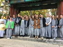 Zunächst Aufenthalt der deutschen Austauschgruppe im Kloster Haein-sa: Morgenzeremonie, Zen-Meditation, Dado-Teezeremonie, Barugonggyang Mönch-Mahl und Wanderung zum stehenden Buddha.