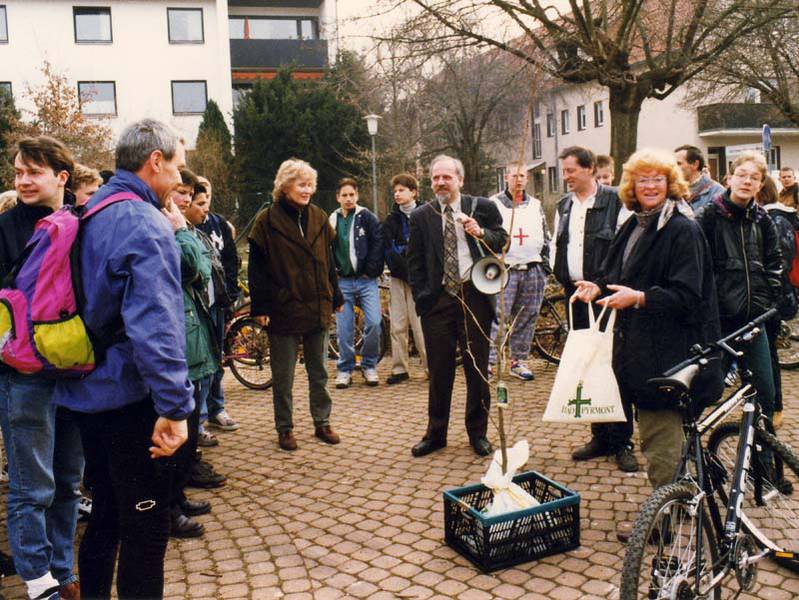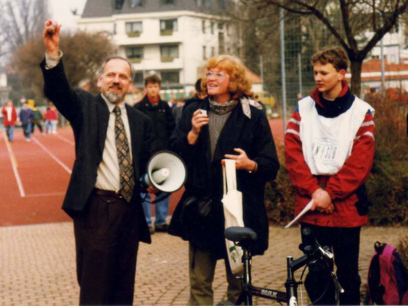 Das Recht auf Ausbildung wird heute genau so wenig eingelöst wie 1985, im internationalen Jahr der Jugend. Der Mangel an Lehrstellen für unsere Hauptschüler war Anlaß für das Projekt. Ich laufe meilenweit für einen Ausbildungsplatz< der Grund-und Hauptschule Weiche. Über eine Strecke von 100 Kilometern transportierten SchülerInnen das Holz nach Kiel zur IGS-Friedrichsort, wo sie Kontakt zu den Schülerinnen und Schülern aufnahmen, in der Turnhalle übernachteten und am nächsten Tag eine gemeinsame Delegation ins Bildungsministerium schickten. Sie überreichten dem Staatssekretär ein durchgelaufenes Paar Turnschuhe und erhielten die Zusage für Unterstützung bei der Lehrstellensuche, die auch eingehalten wurde. (von: Peter Jensen, ehemaliger Regionalkoordinator der UNESCO-Projektschulen in Schleswig Holstein)