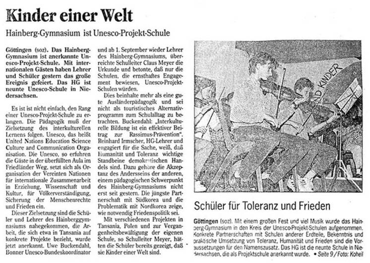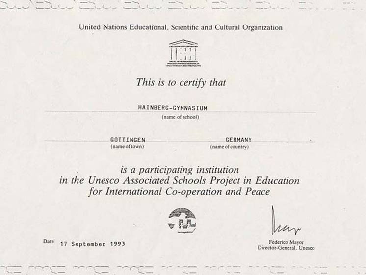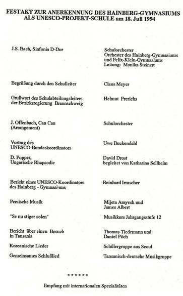 Anerkennungsfeier als UNESCO-Projektschule 1994