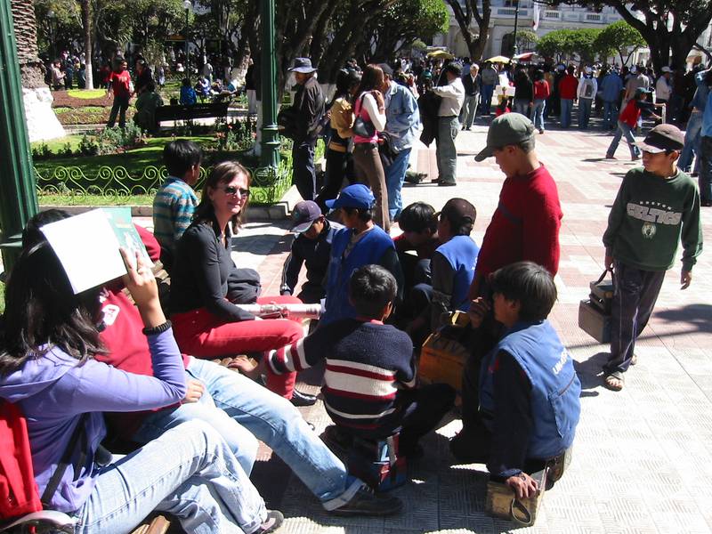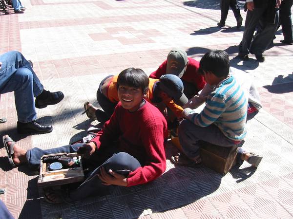 Schuhputzer auf der Plaza in Sucre/Bolivien