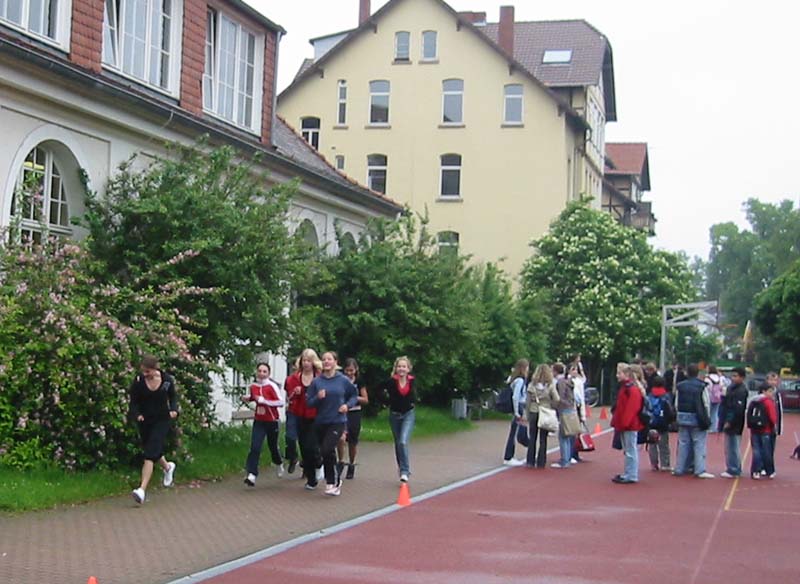 Jahrgang 5 bis 12 sowie Lehrerinnen und Lehrer teil. Jeder Teilnehmer suchte sich im Vorfeld einen Sponsor, der ihm pro gelaufene Runde