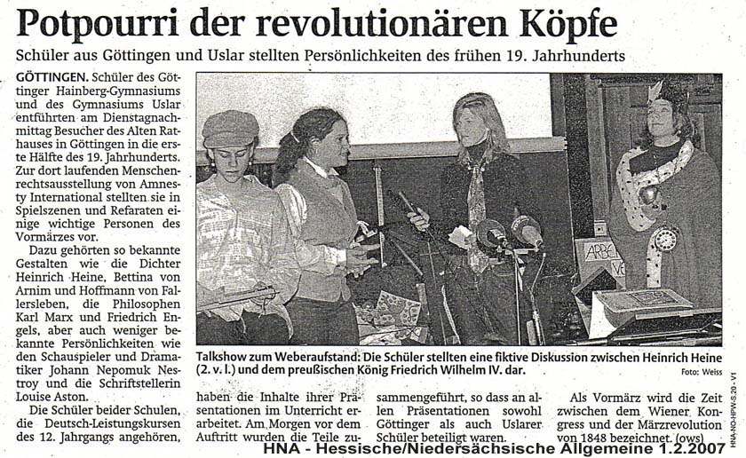 mit bekannten Persönlichkeiten aus der Zeit des Vormärz auseinander gesetzt. Ergebnis dieses Projektes ist eine literarische und