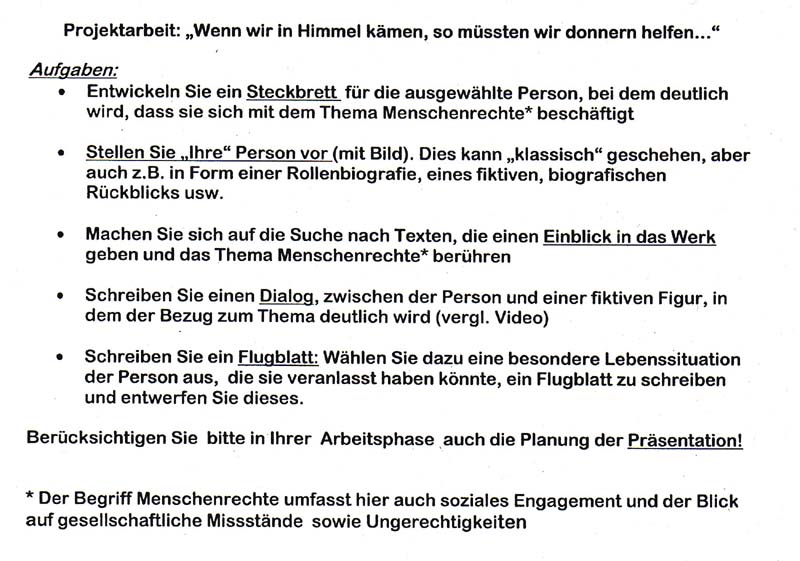 "Hinsehen - Standpunkte zum Thema Menschenrechte" |