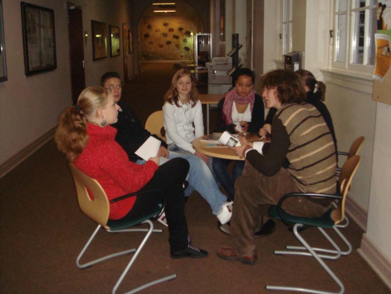 Vorbereitung mit Jean Piere, Maria, Seb(astian), Marie und Morgan von der tdh-Hochschulgruppe im WPU: