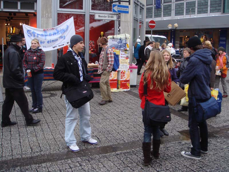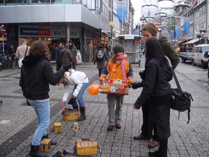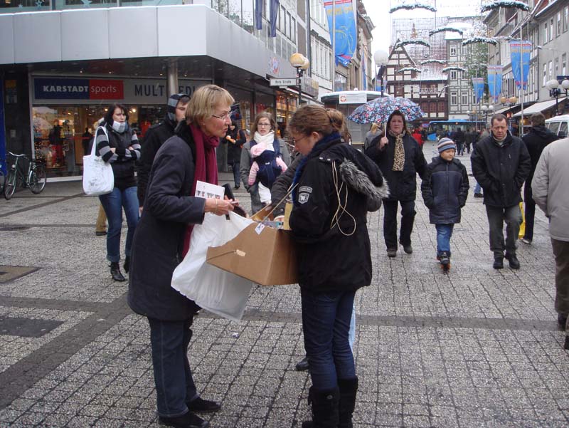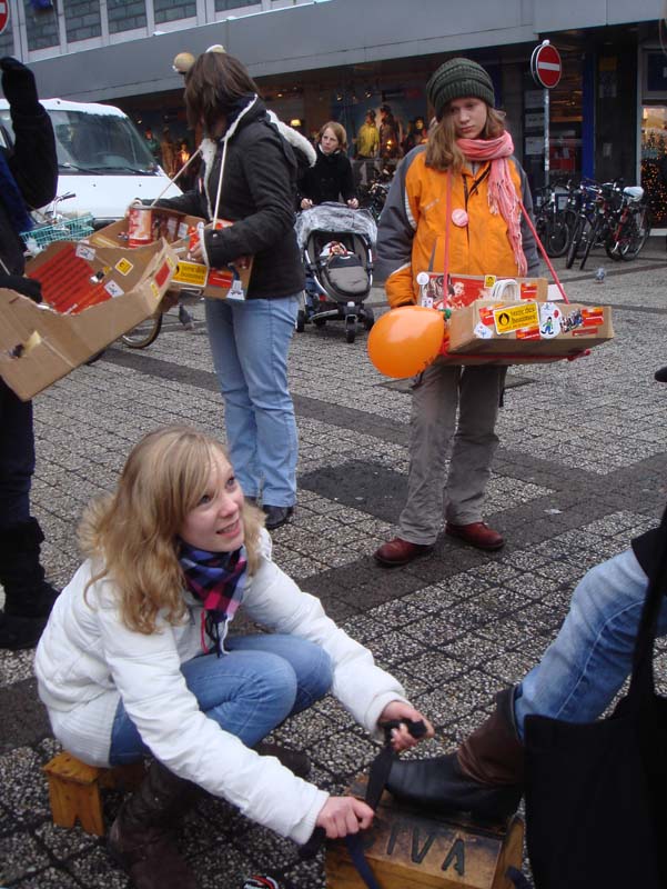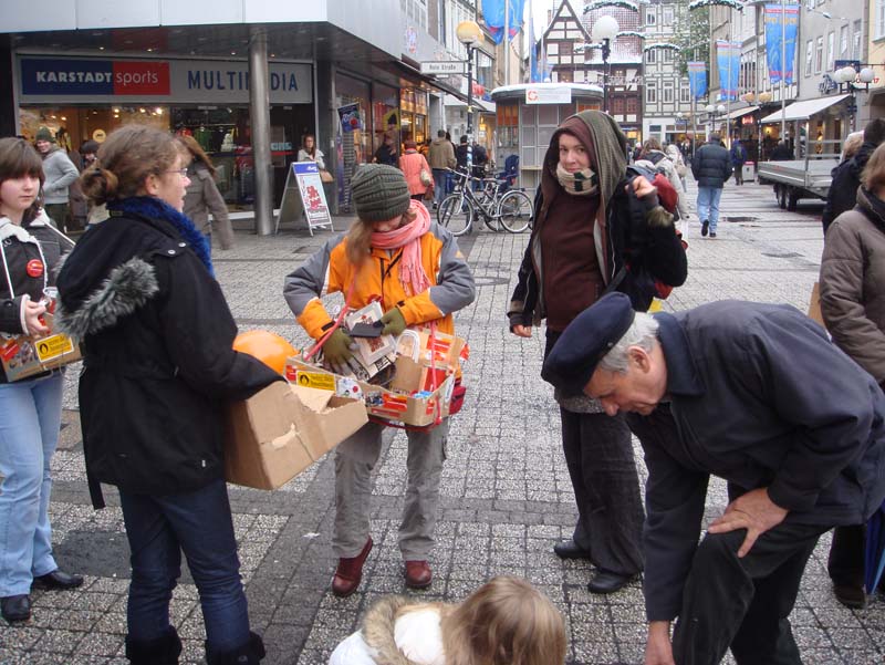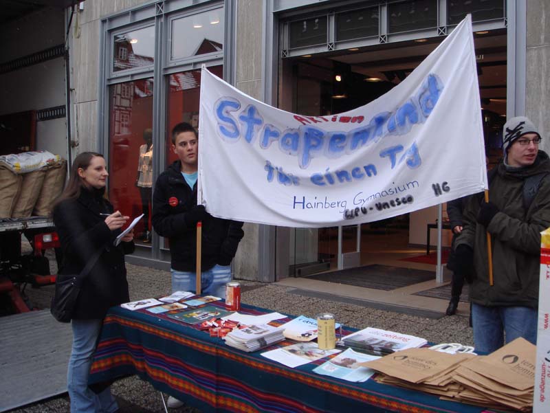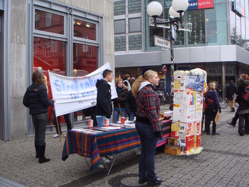 In Göttingen werden 19 Schülerinnen und Schüler des Hainberg-Gymnasiums (Wahlpflichtkurs UNESCO, Jahrgang 8) am 24. November 2008 Schuhe putzen, Papiertaschen verkaufen und einen Info-Stand am Alten Rathaus errichten. Ziel der Aktion ist es, auf die Situation der Straßenkinder aufmerksam zu machen und Spenden für Straßenkinderprojekte zu sammeln. Unterstützt werden sie hierbei von der terre des hommes Hochschulgruppe der Uni Göttingen.